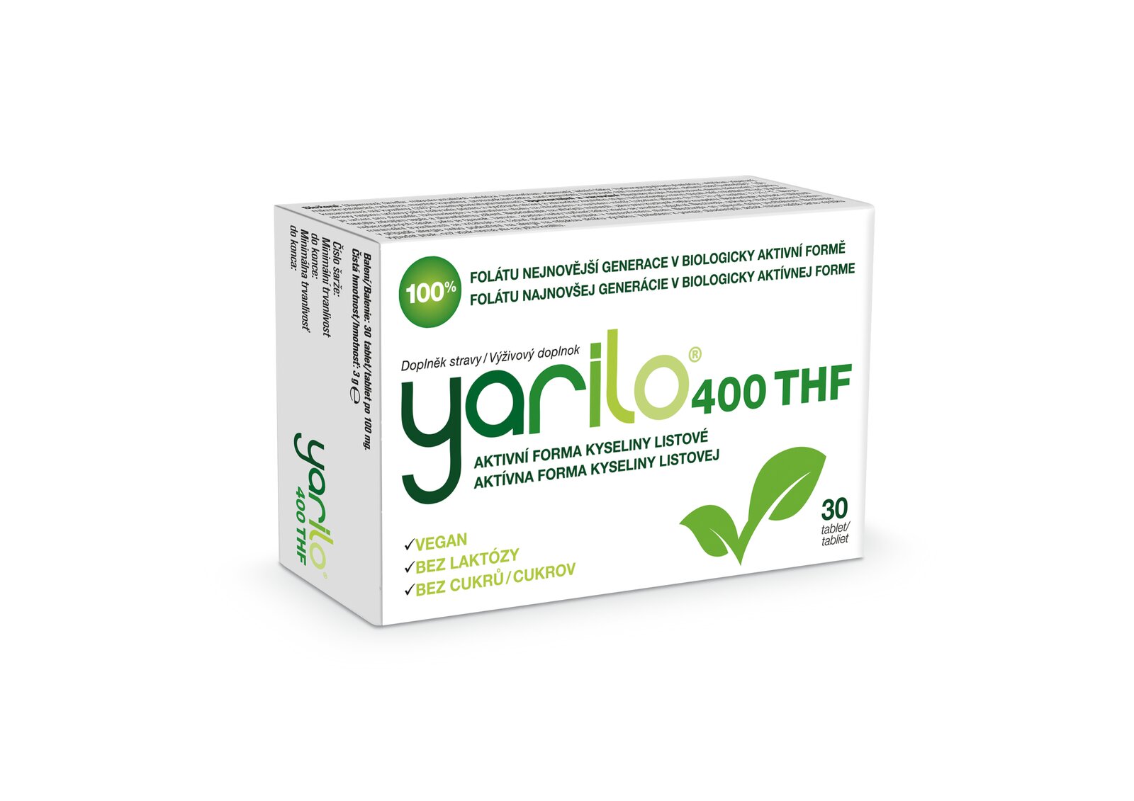 Jedna tableta Yarilo® 400 THF obsahuje 400 µg plně biologicky aktivního folátu nejnovější generace. Na rozdíl od obyčejné kyseliny listové je okamžitě účinný a nemusí se metabolizovat pomocí enzymu MTHFR. Při užívání této 100 % aktivní formy kyseliny listové se v organizmu neobjevuje nemetabolizovaná kyselina listová (UMFA – unmetabolised folic acid).
