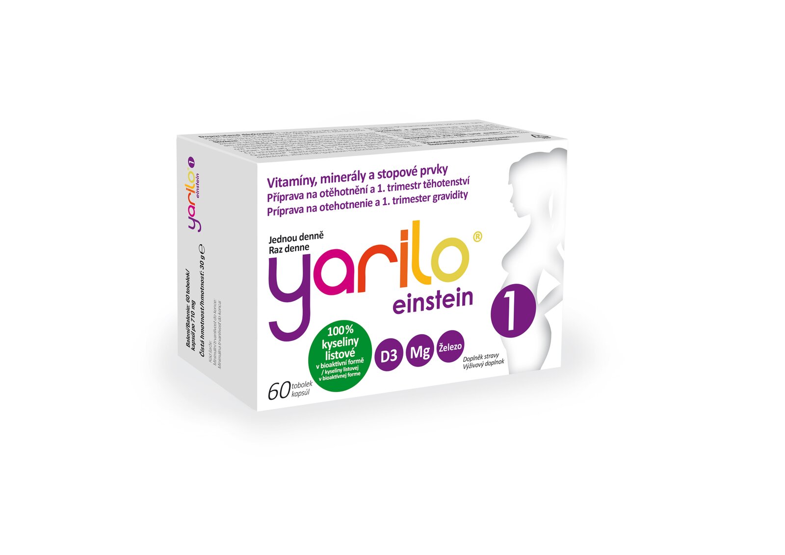 Yarilo® einstein 1 obsahuje 800 µg plně biologicky aktivního folátu nejnovější generace. Na rozdíl od obyčejné kyseliny listové je okamžitě účinný a nemusí se metabolizovat pomocí enzymu MTHFR. Při užívání 100 % čistého aktivního folátu se v organizmu neobjevuje nemetabolizovaná kyselina listová (UMFA – unmetabolised folic acid).Doplňkový příjem folátu zvyšuje u těhotných žen hladinu folátu. Nízká hladina folátu u těhotných žen je rizikovým faktorem pro vznik vad neurální trubice u vyvíjejícího se plodu. Příznivého účinku se dosáhne při doplňkovém denním příjmu folátu 400 μg v době nejméně od jednoho měsíce před početím a do tří měsíců po početí. Folát se podílí na dělení buněk a podporuje také růst zárodečných tkání v těhotenství.